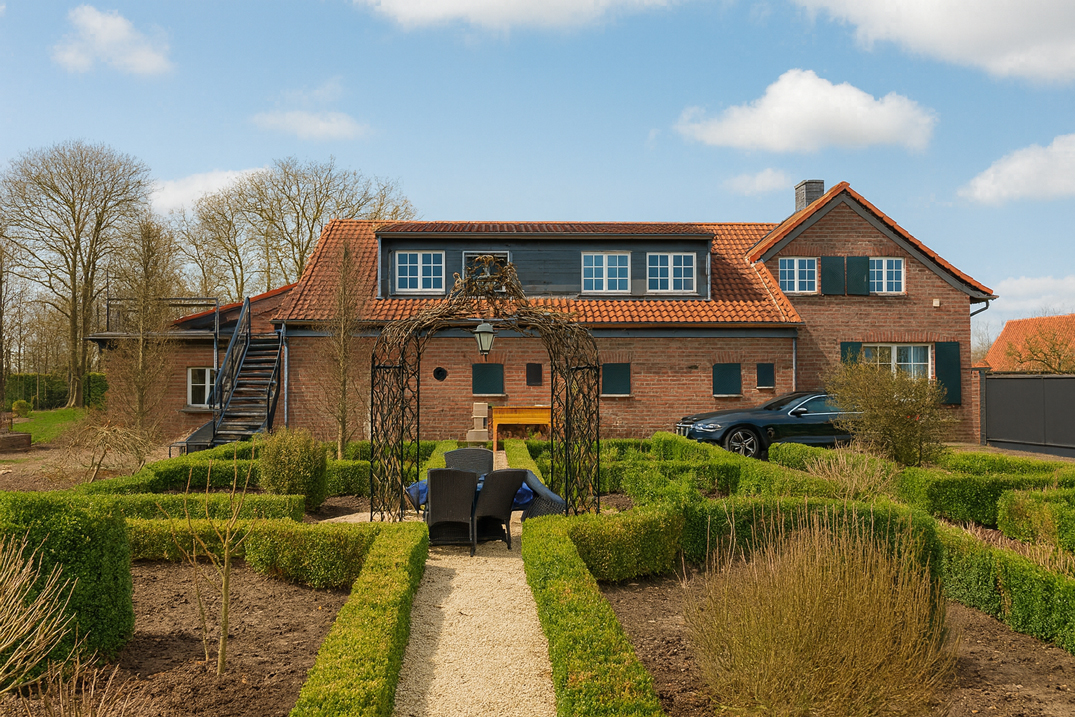 Auf einem großzügigen Grundstück am Niederrhein steht diese ehemalige Schmiede, die zu einem modernen Wohnhaus umgebaut wurde. Die Architektur verbindet den ländlichen Backsteincharakter mit präzisen, zeitgemäßen Eingriffen und bewahrt dabei die historische Substanz. Entstanden ist ein klar strukturierter, lichtreicher Wohnraum mit starkem Innen-Außen-Bezug.